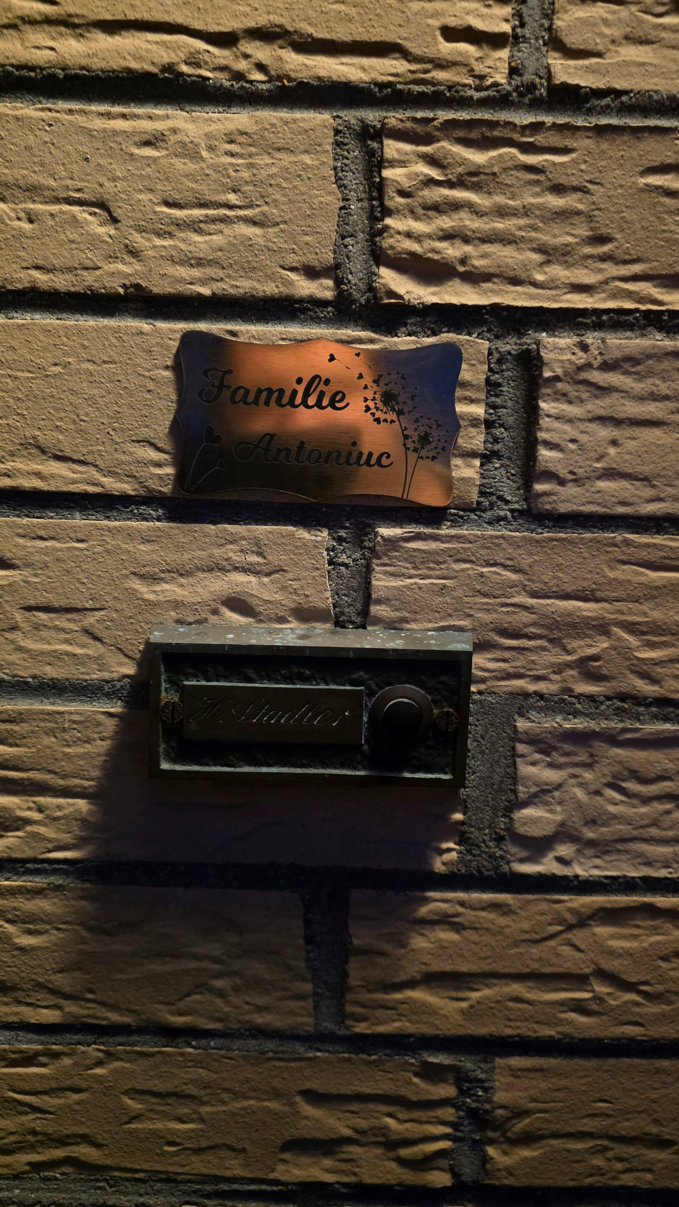 Unser personalisiertes Klingelschild kann ganz leicht durch die selbstklebende Rückseite in unterschiedlichsten Umgebungen abgebracht werden, z.B als Briefkasten Aufkleber, Namensschild an der Tür bzw. Haustürschild mit Namen.